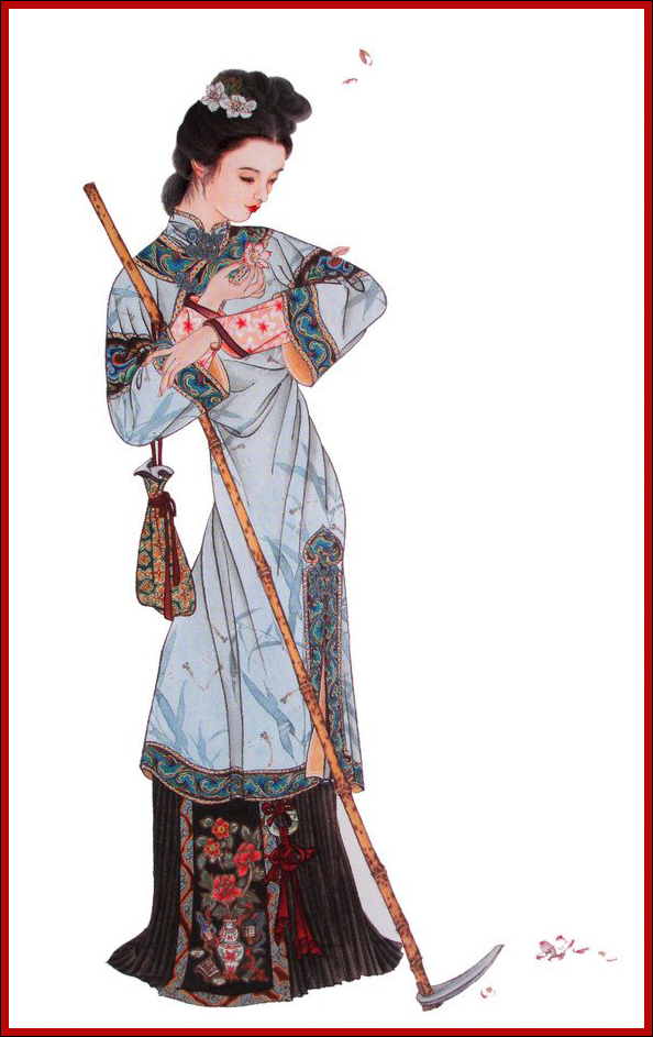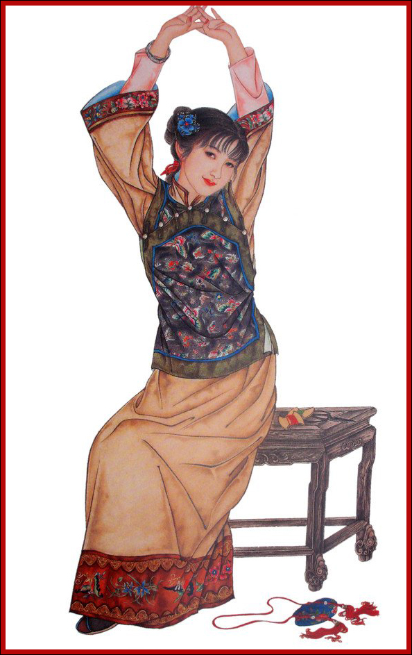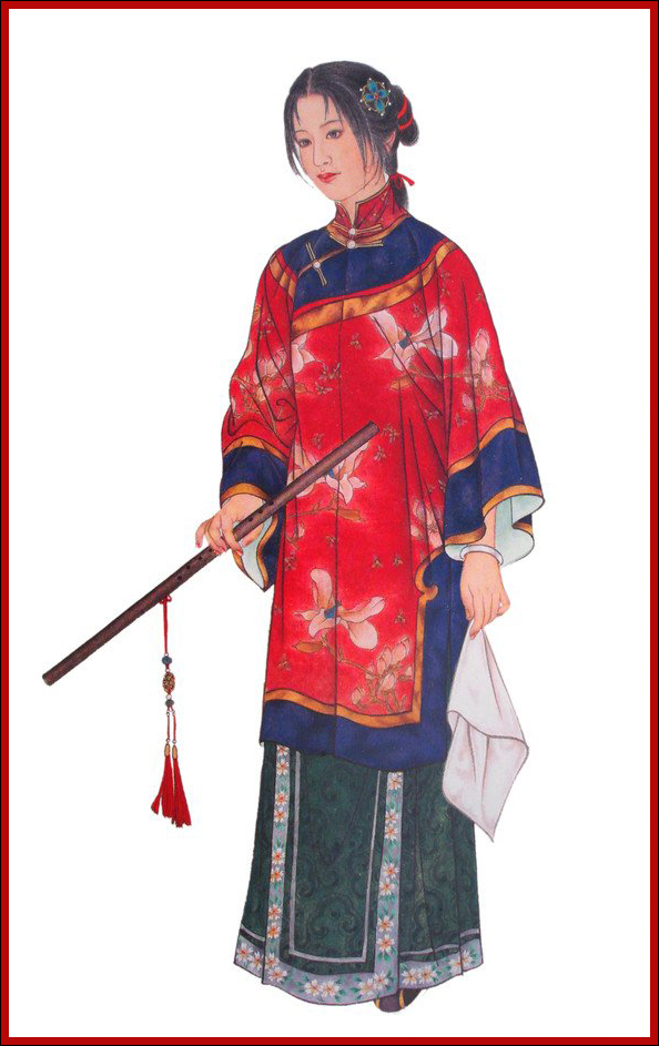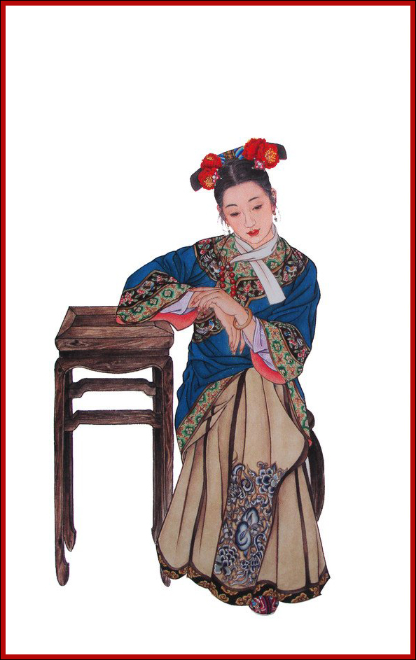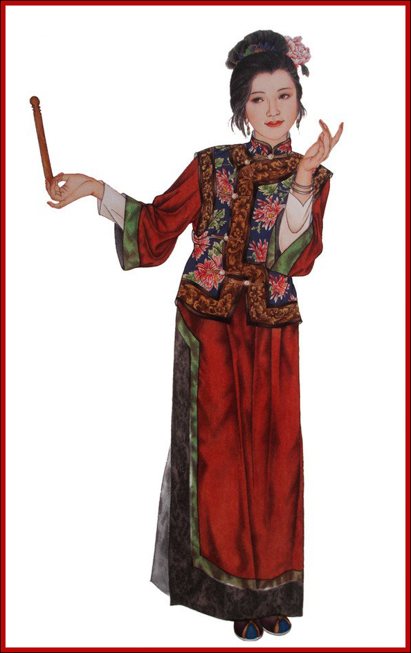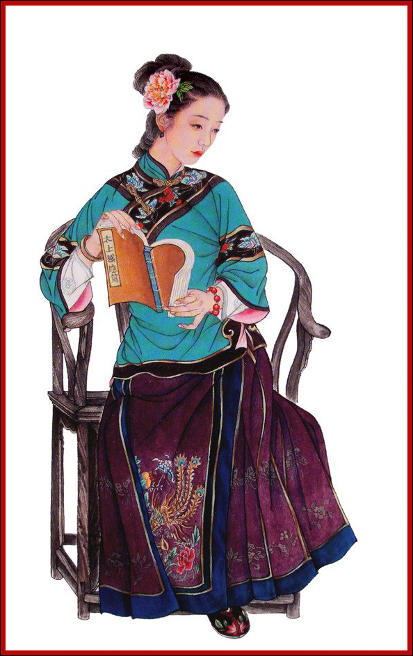 ”一般,一概不闻不问,只知道抚养亲子,闲时陪侍小姑等女红、诵读而已。她是个恪守封建礼法的贤女节妇的典型。