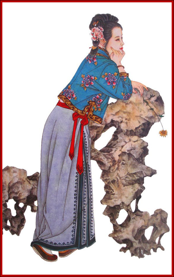 林黛玉,林如海与贾敏的独女。因父母先后去世,外祖母怜其孤独,接来荣国府抚养。虽然她是寄人篱下的孤儿,但她生性孤傲,天真率直,和宝玉同为封建的叛逆者,从不劝宝玉走封建的仕宦道路。她蔑视功名权贵,当贾宝玉把北静王所赠的圣上所赐的名贵念珠一串送给她时,她却说∶“什么臭男人拿过的,我不要这东西!”她和宝玉有著共同理想和志趣,真心相爱,但这一爱情被贾母等人残忍地扼杀了,林黛玉泪尽而逝。